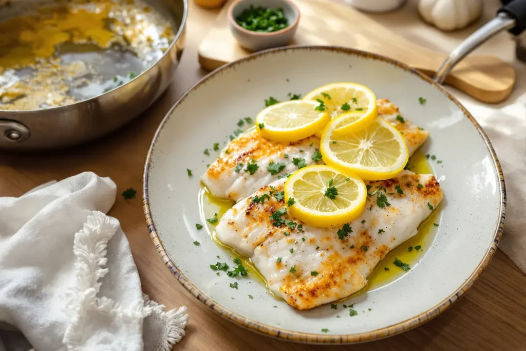 ¿Estás buscando una cena rápida, sabrosa y saludable? Esta receta de pescado blanco al sartén, con limón y hierbas, tiene todo lo que necesitas: lista en solo 15 minutos, con ingredientes que seguramente ya tienes y un sabor tan fresco que vas a querer prepararla una y otra vez. Es perfecta para los días ocupados o cuando simplemente no quieres pasar horas en la cocina.